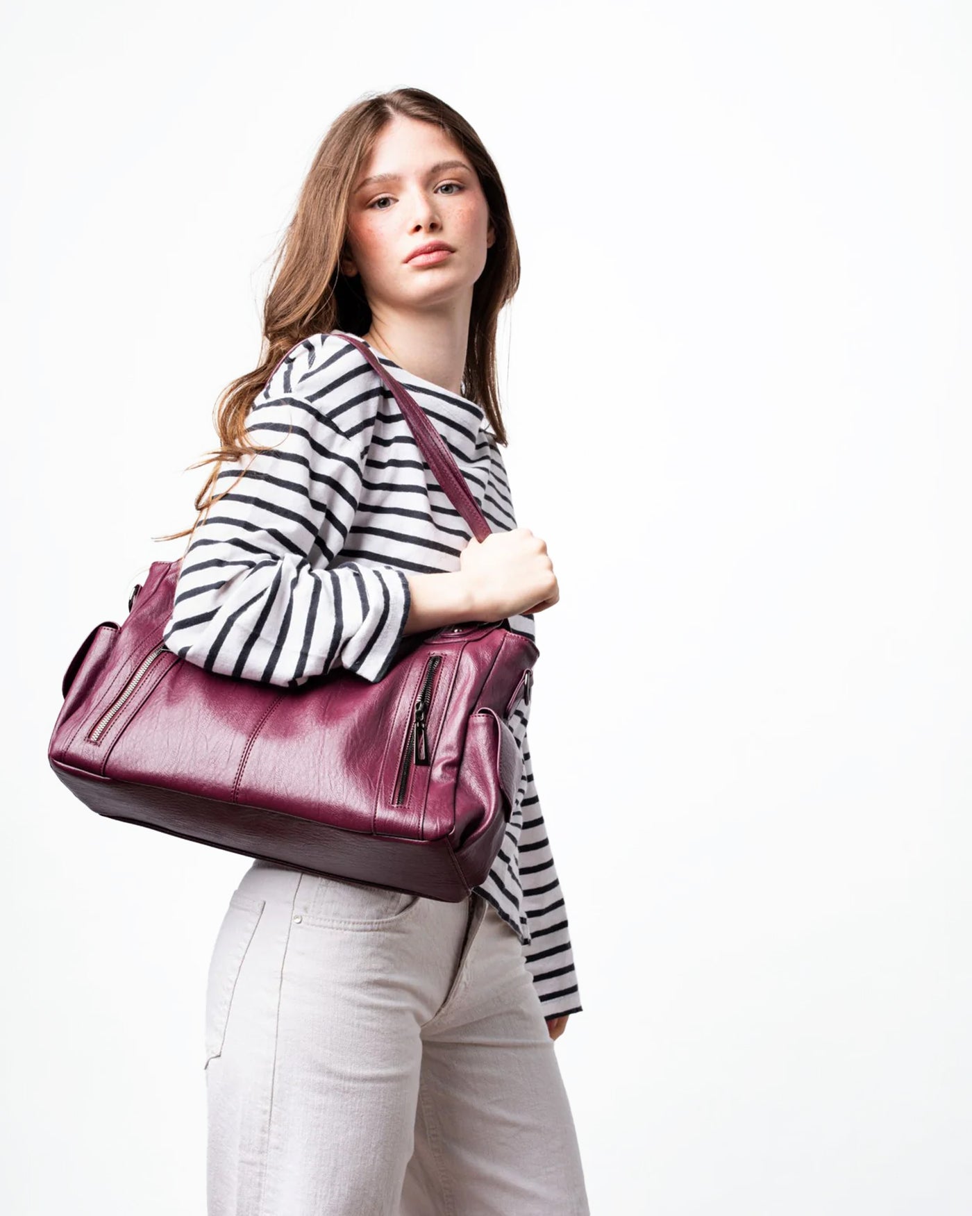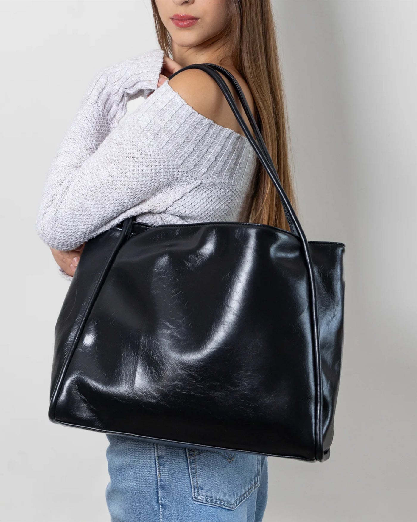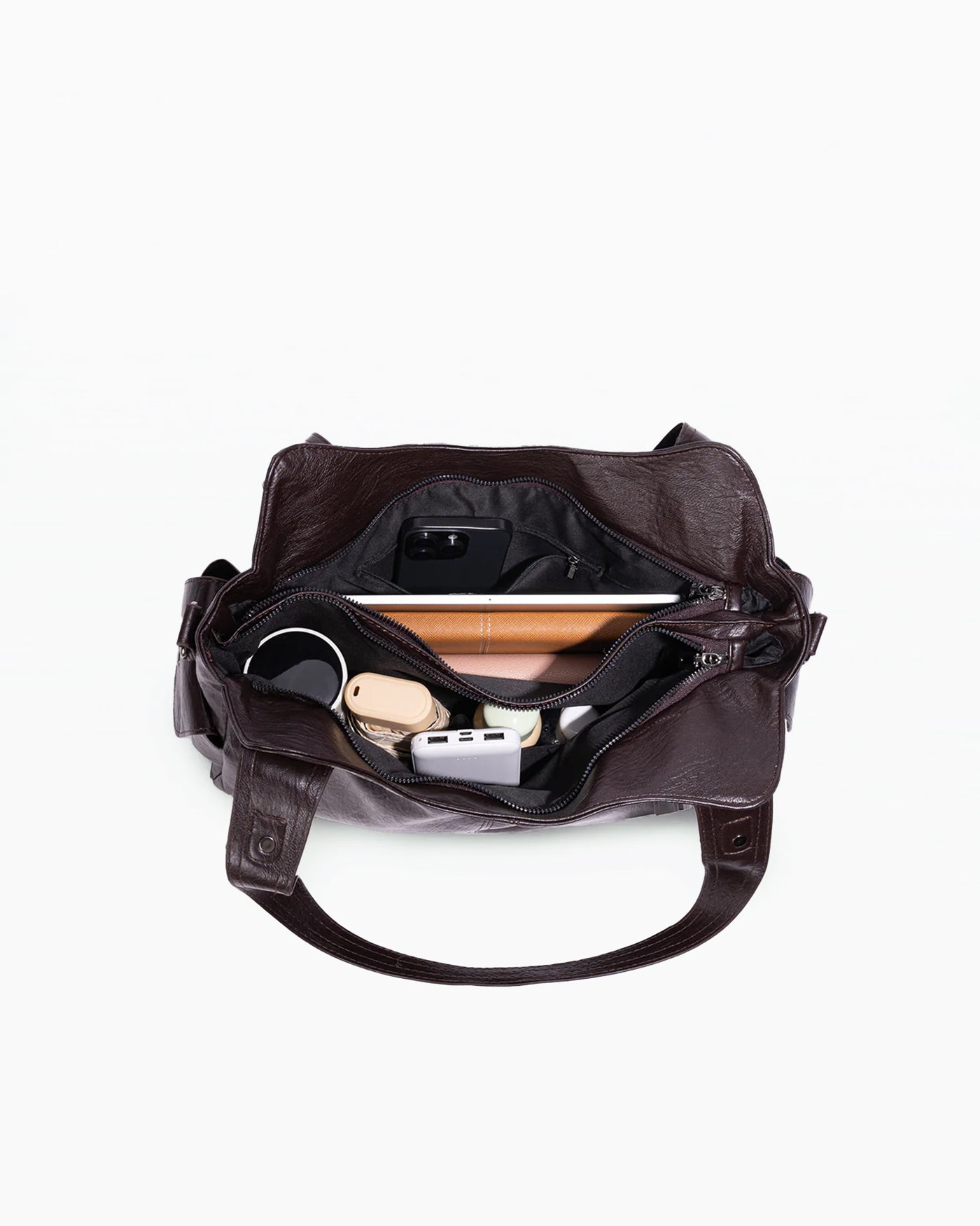 Vintage-Inspired Slouchy Vegan-Leather Tote Bag