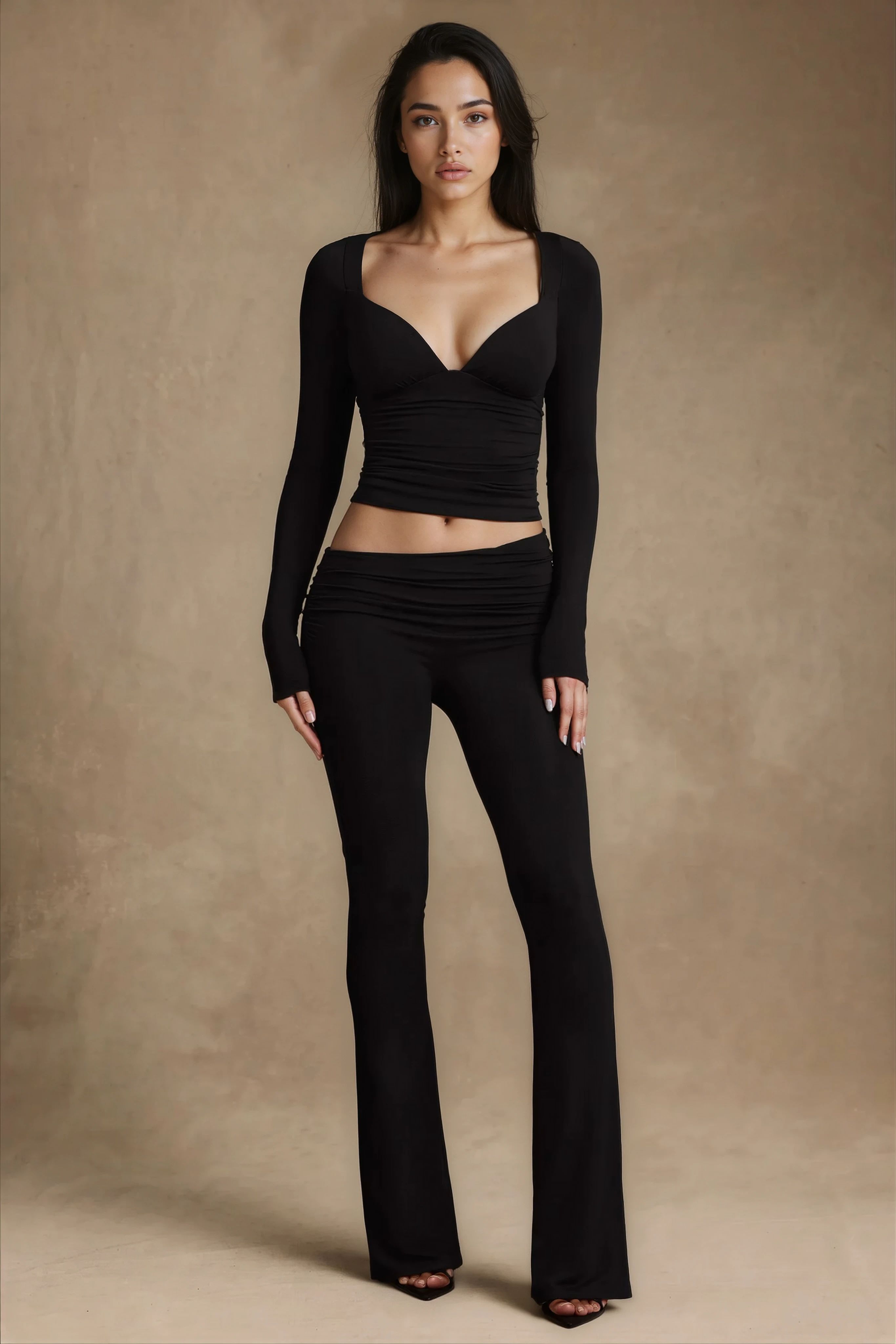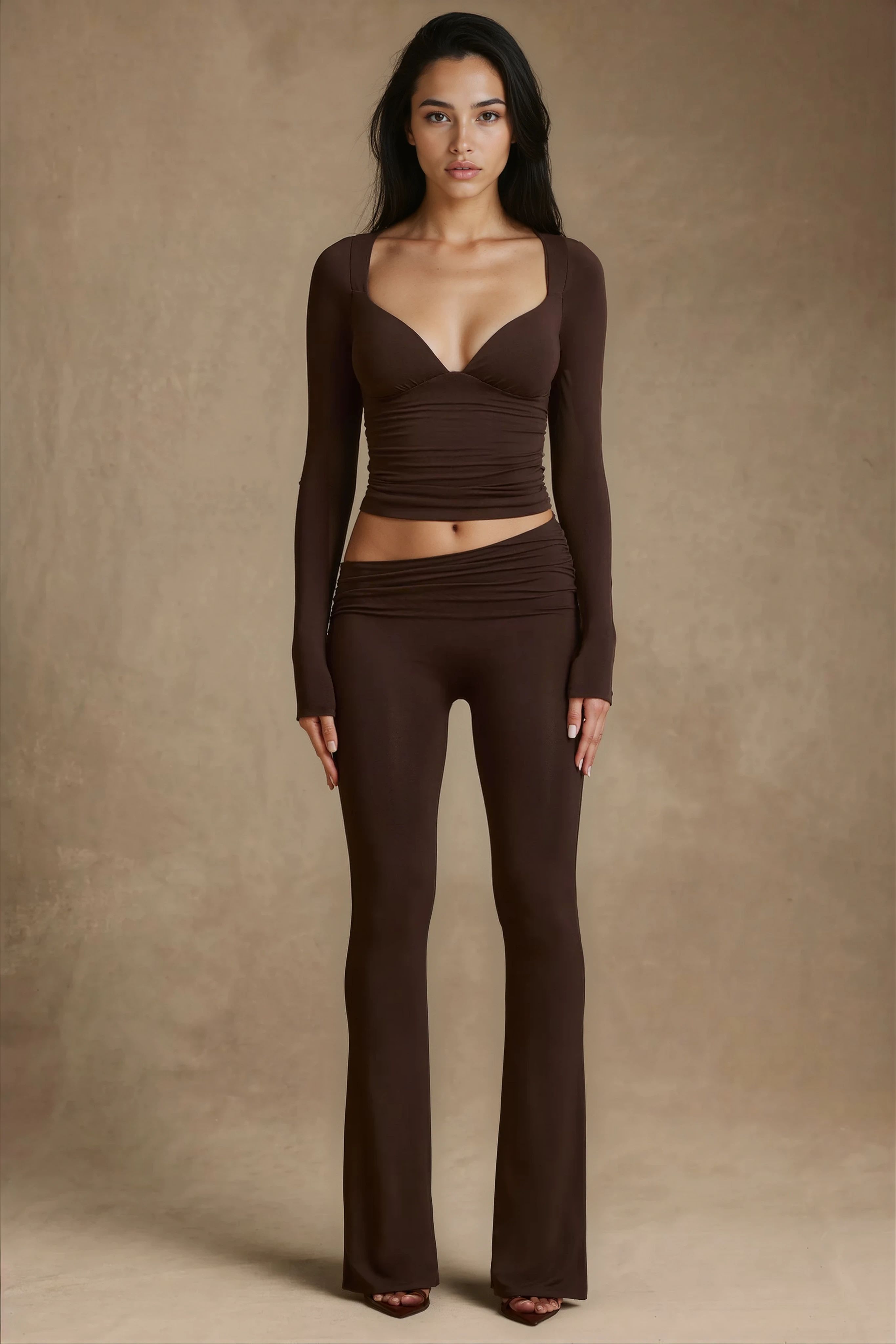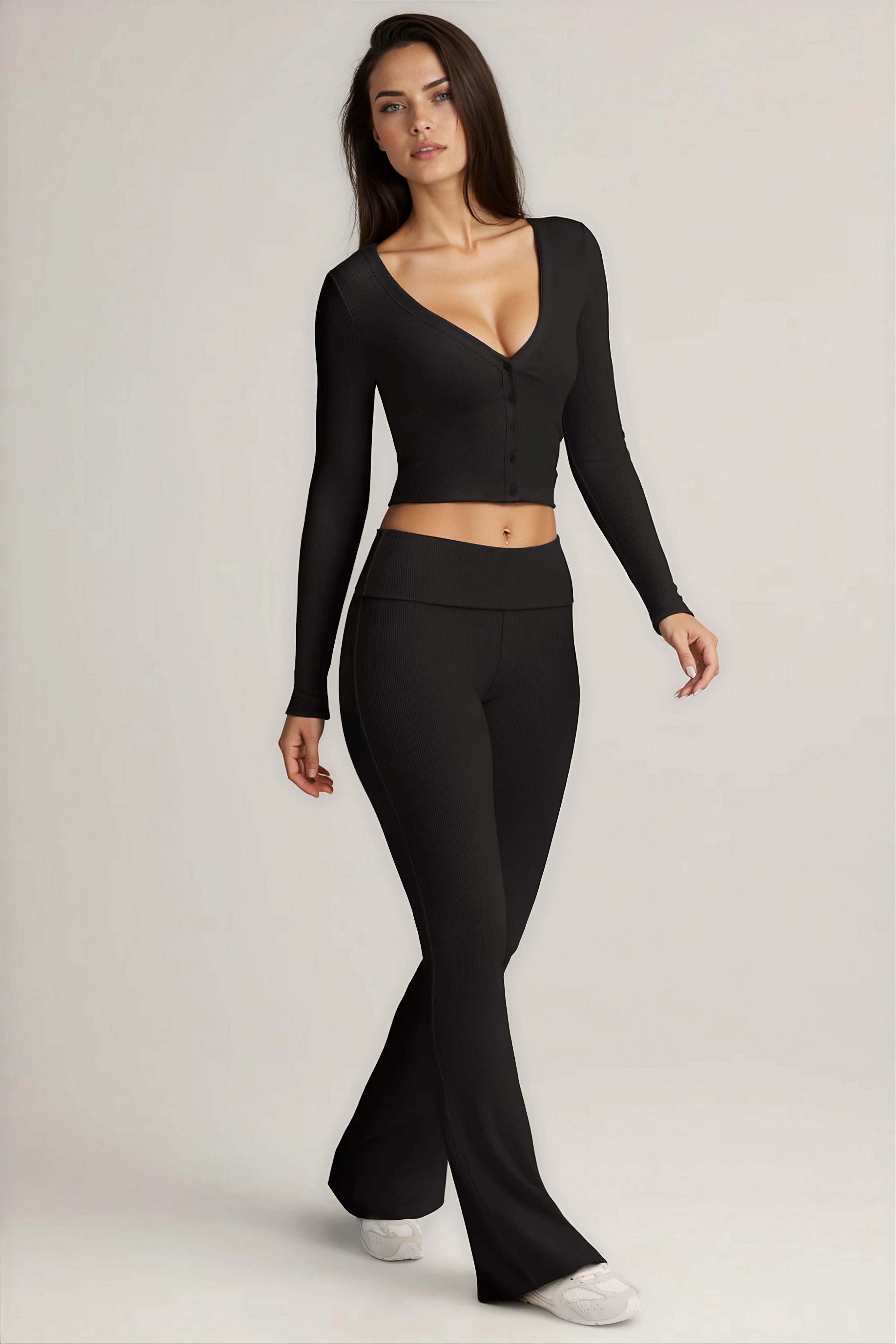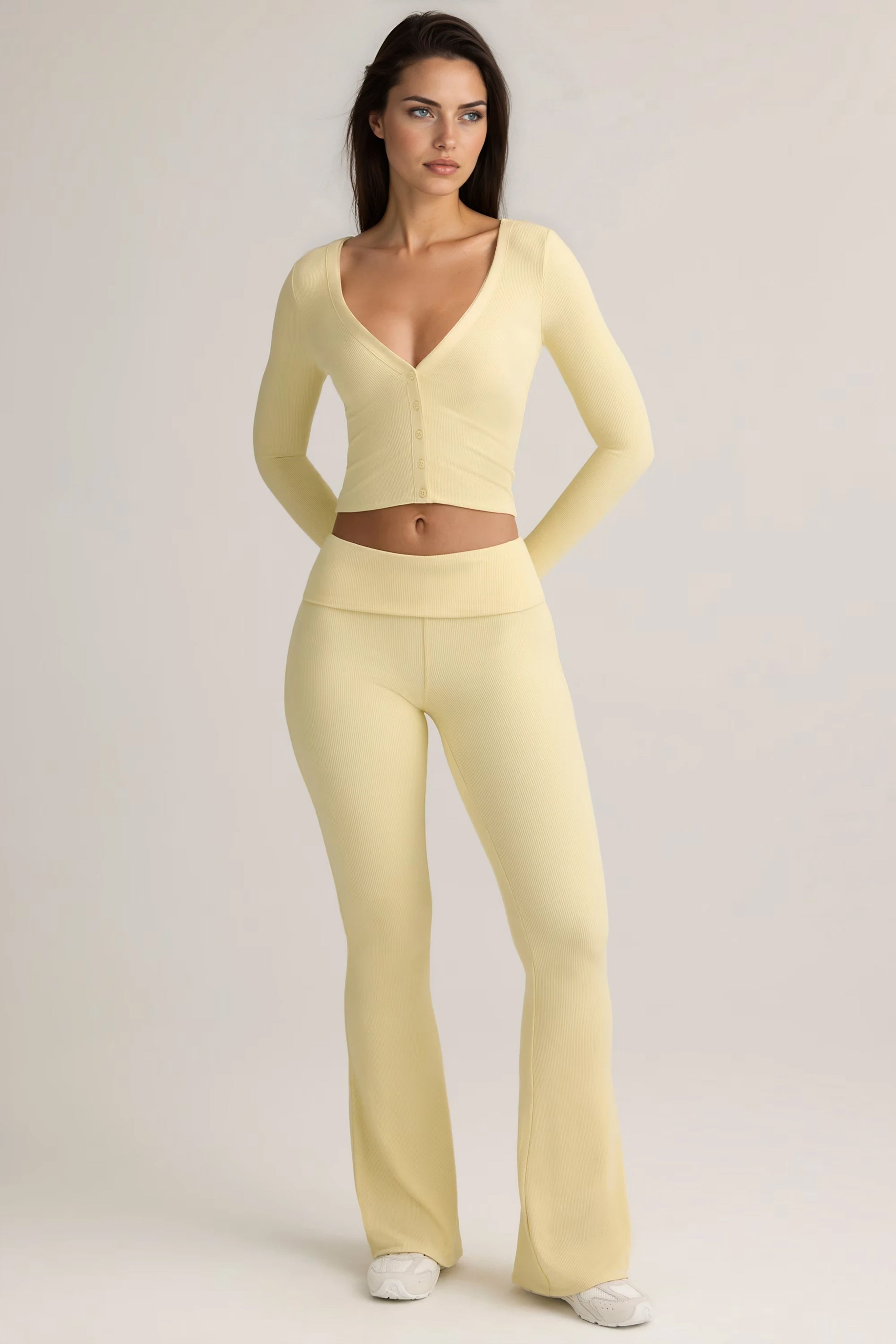 Modal Ribbed Foldover Flared Trousers