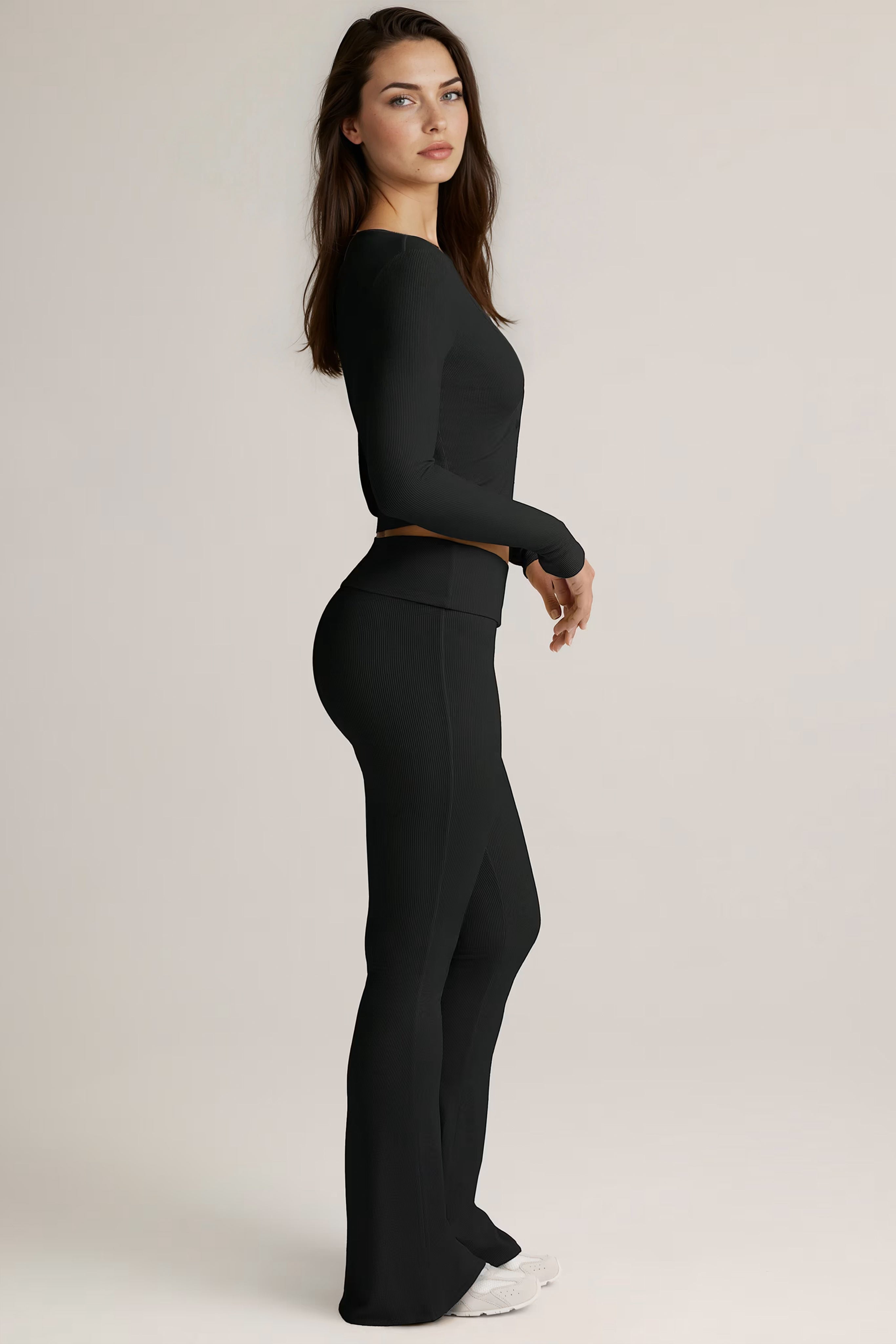 Modal Ribbed Foldover Flared Trousers