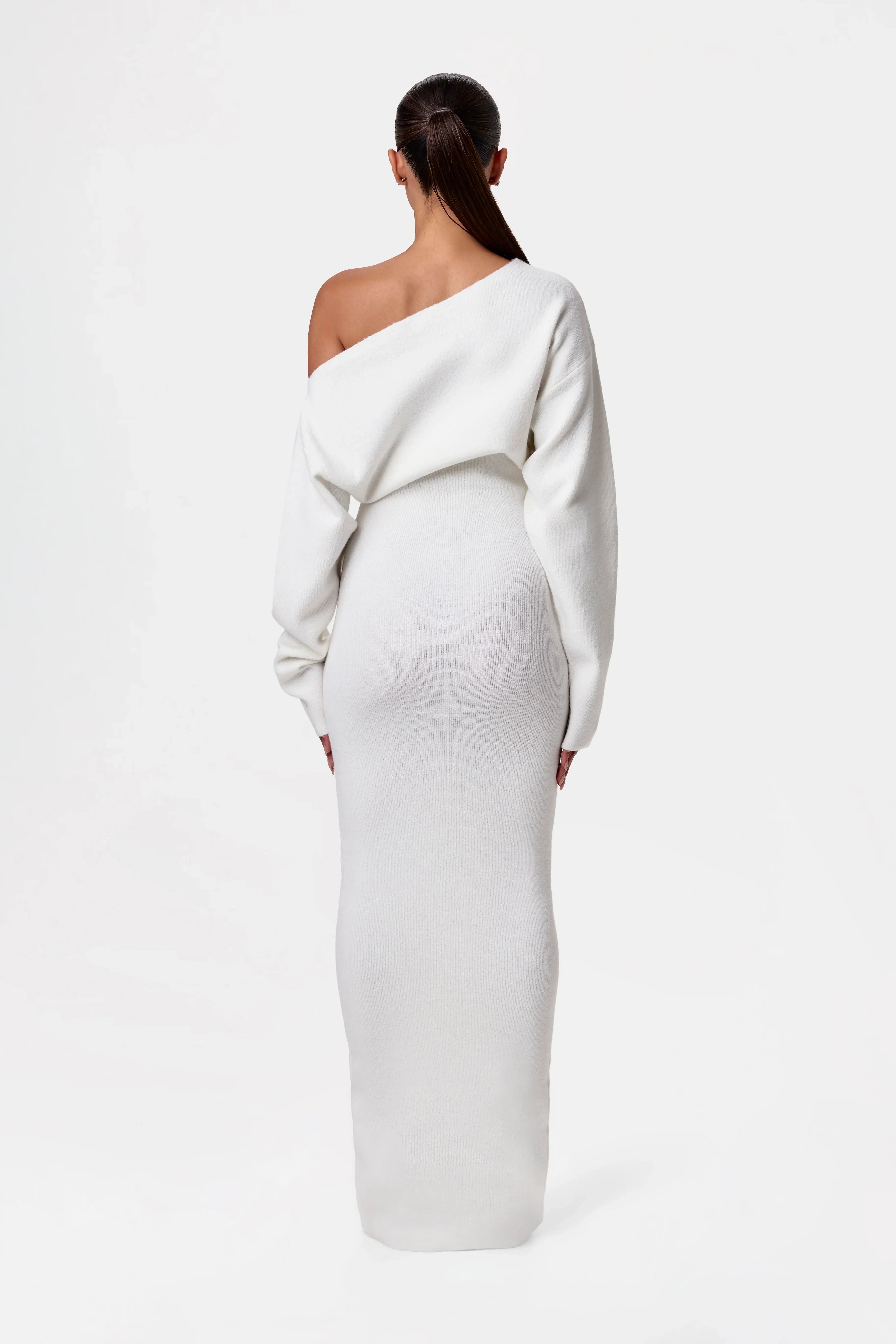 Crafted from a soft, stretchy knit fabric, it hugs your curves in the most flattering way while the off-shoulder neckline adds a playful yet elegant touch. Whether you're going for a chic everyday look or dressing up for a night out, this dress will make you shine on any occasion.
