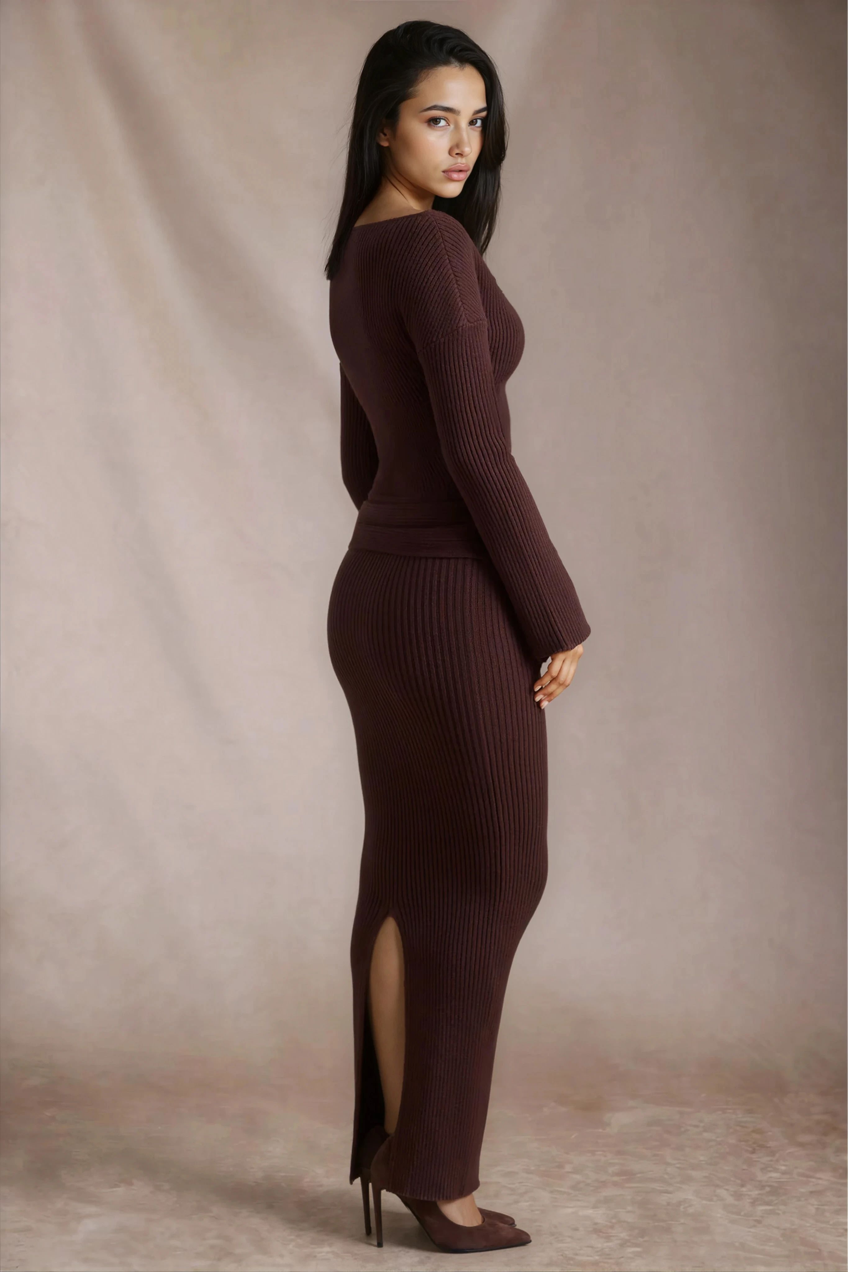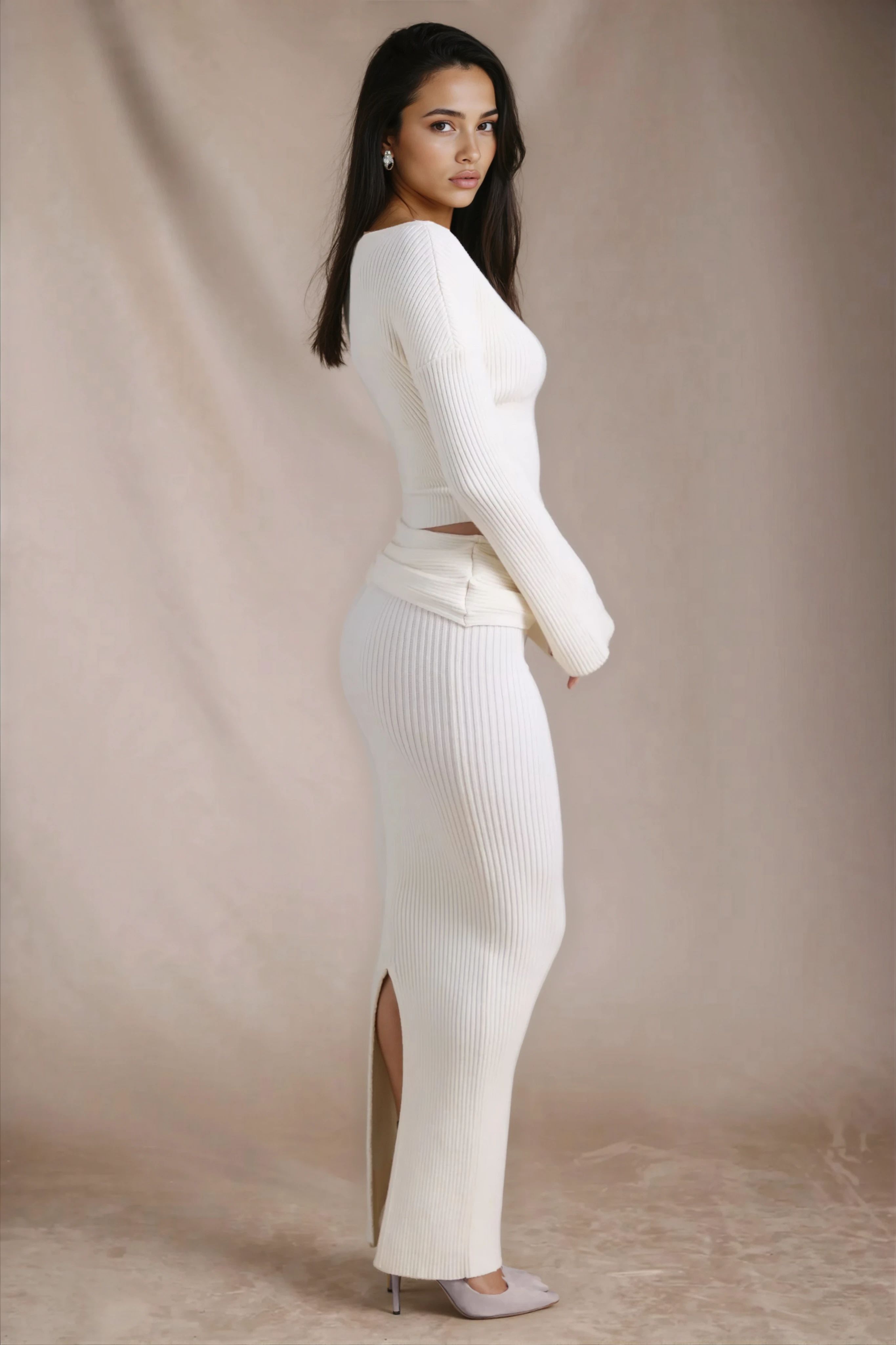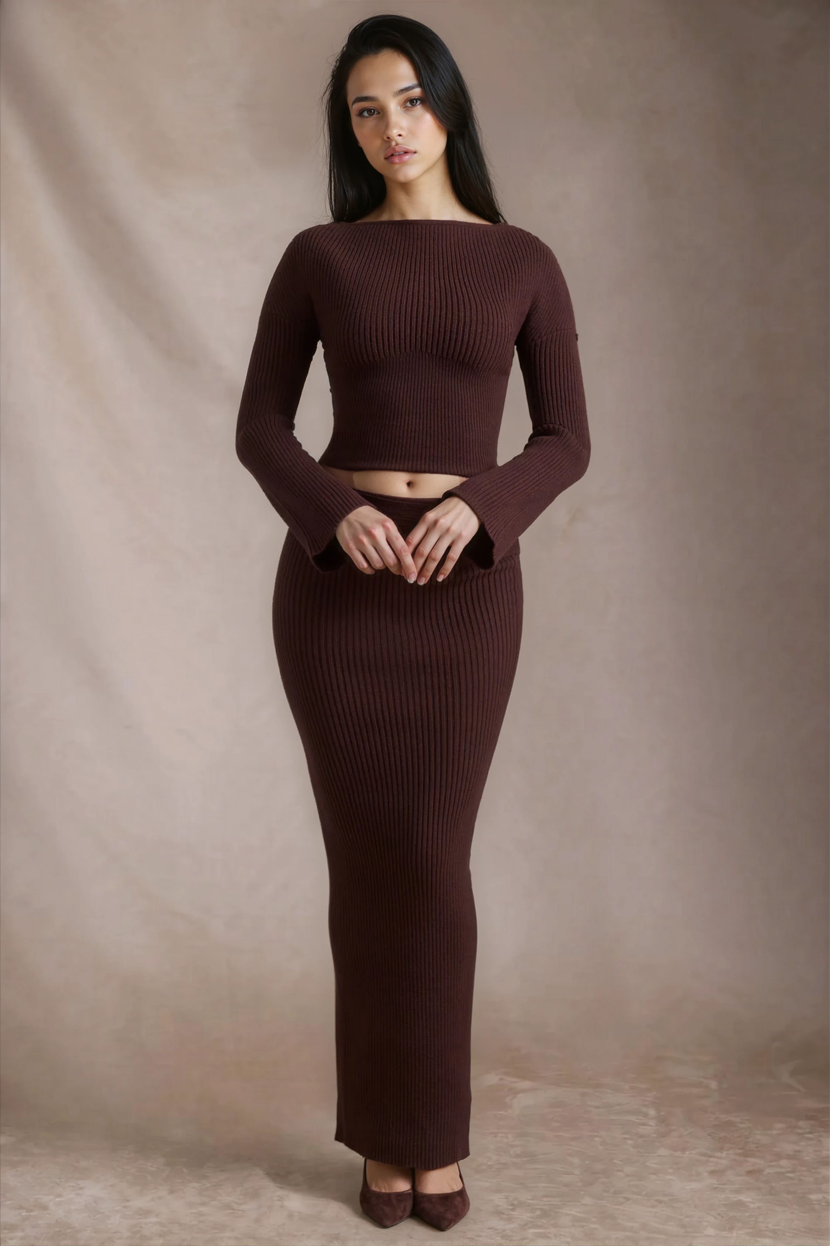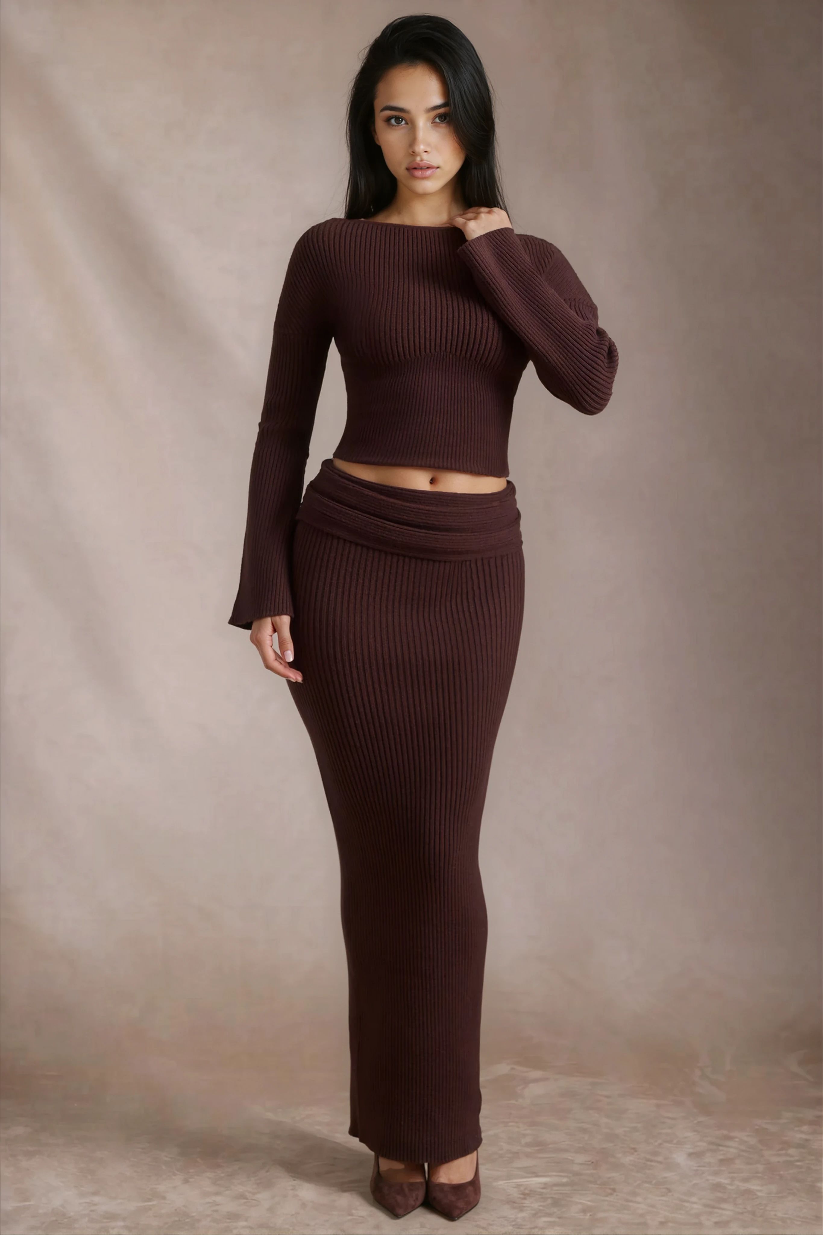 Luxe styling. A classic style that can be dressed up or down for any occasion, the Anise maxi skirt is spun from ultra-luxurious, lightly stretchy ribbed-knit fabric that’s soft to the touch and maintains its shape. Cut for a universally flattering mid-rise fit, it’s set on an elasticated waistband with an adjustable foldover panel for a custom fit and pairs perfectly with our Marta top in a coordinating hue.